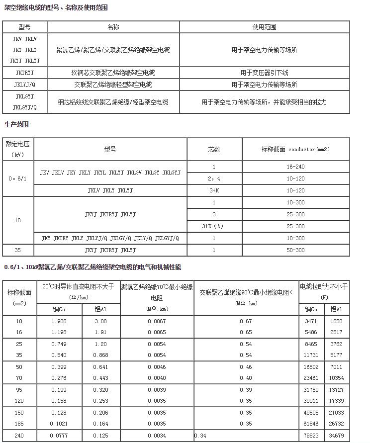 本產(chǎn)品適用于額定電壓35kV及以下的架空電力線路。電纜的機械性能和電性能符合國家標準GBl4049《額定電壓10kV、35kV架空絕緣電纜》和GBl2527《額定電壓1kV及以下架空絕緣電纜》。其中鋼芯鋁絞線交聯(lián)聚乙烯絕緣架空電纜的纜芯結構參照國標GB/T1179《圓線同心絞架空導線》,電纜的電性能和絕緣的機械物理性能符合國標GBl4049及GBl2527。